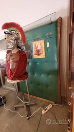 Appendiabiti vintage, in pelle verde, restaurato. mensola in vetro sopra. Vendo senza panca senza stampa e senza statua davanti. Solo appassionati ed interessati. Ritiro presso terzi