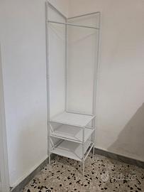 Vendo pratico appendiabiti angolare in tela e tubi in acciaio bianco, ideale per ottimizzare lo spazio in camera da letto, cabina armadio, lavanderia o anche per allestimenti in negozio. La struttura è leggera ma stabile e perfetta per angoli inutilizzati.