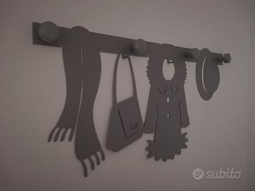 In vendita appendiabiti "Abbiamo visite" della marca Arti&Mestieri, in metallo color argento. Come nuovo, ancora in scatola originale. Dimensioni massime 81x44 cm con 4 pomelli e 2 ganci. Installazione facilissima a muro (i 4 pomelli sono già dotati di vite per inserimento in tassello).