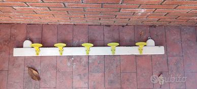 Appendiabiti anni 50 60, in legno con ganci in plastica gialla. Nessuna rottura, segni del tempo. Lunghezza circa 120/130 cm