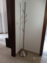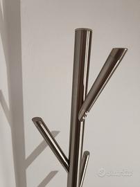 Appendiabiti BALVI in metallo di colore metallo satinato: base conica compatta, di 32 centimetri di diametro, 6 ganci e un'altezza di 174 centimetri.
