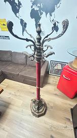 Appendiabiti in bronzo, ottone e legno, Italia, anni '50 base in legno piedi in bronzo e ottone staffa in alcantara. Esemplare magnifico introvabile