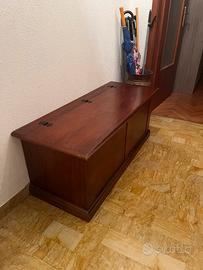 Vendo in abbinamento cassapanca vintage, appendiabiti e specchio con cornice in legno.