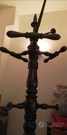 Appendiabiti color noce scuro. Dotato di parti girevoli in alto e in basso. Manca una delle punte in alto. Misure Altezza 185 cm Larghezza della base tonda 50 cm Possibilità di visionarlo, ritiro e trasporto a carico dell'acquirente.