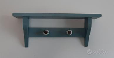 L'appendiabiti è stato realizzato a mano con l'aiuto di mio padre qualche anno fa utilizzando legno abete riciclato, per questo motivo presenta irregolarità di superficie e segni di usura nella colorazione in stile Shabby. I pomelli sono in ceramica e posteriormente due fori obliqui facilitano l'installazione a parete.