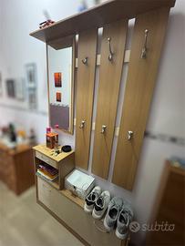 Vendo bellissimo armadietto d’ingresso in legno, completo di specchio, appendiabiti e un pratico vano scarpiera. Perfetto per organizzare il tuo spazio e dare un tocco di eleganza al tuo ingresso.