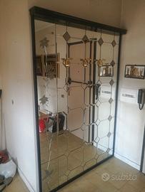 Appendiabiti da ingresso a parete con specchio dotato di tre ganci. Dimensioni: cm 150 di larghezza, cm 220 di altezza, spess cm 4. Leggera usura ma in buono stato; colore nero come da foto. Lo specchio non presenta segni o graffi.