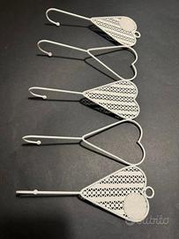 Bellissimo appendiabiti da parete in metallo bianco, design romantico a cuori.