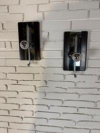 Coppia di appendiabiti da parete anni ’70, design Willy Rizzo, in polimero con inserti in metallo. Elementi iconici dell’estetica industriale e sofisticata dell’epoca.