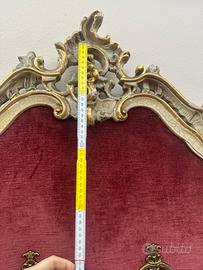 Pannello centrale imbottito e rivestito in velluto rosso, molto decorativo e scenografico, completo di 4 appendini in metallo finemente lavorati.