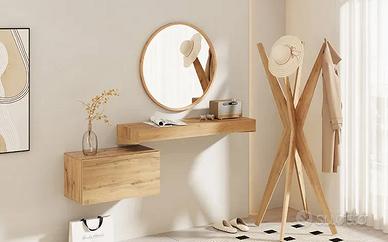 Appendiabiti da terra di Design, Emma. Colore rovere rustico. Come nuovo. Realizzato in nobilitato di alta qualità. È dotato di 4 braccia in grado di reggere un carico massimo di 7 Kg ciascuna. Lunghezza 80 cm. Altezza 170.5 cm. Profondità 80 cm. Acquistato nuovo, montato e mai utilizzato. Completo di kit di ferramenta necessario per il montaggio.