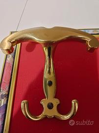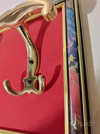 Questo oggetto è un appendiabiti da parete in stile vintage, con un pannello rosso imbottito e ganci in metallo dorato. Stile: Questi pezzi sono ricercati nel mercato del modernariato e del design vintage per il loro valore decorativo e storico. Ghetto Luxury Milan.