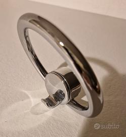 Appendiabiti doppio: nella parte superiore un cerchio in inox, nella parte inferiore un gancio inox. Si applica a muro con 2 tasselli nei 2 fori predisposti di cui uno regolabile. Utile per ingresso, cucina, bagno, camera da letto. Non ha confezione.