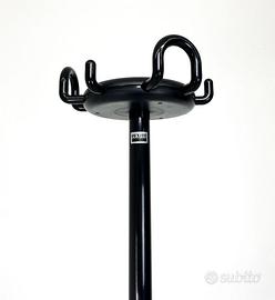 Disegnato nel 1981, l'appendiabiti CRIBBIO è un inconfondibile prodigio di tecnica: prodotto senza saldature, da un unico foglio d'acciaio imbutito e traforato radialmente. Dalla leggerezza e qualità oggi ineguagliate, presenta testa e ganci in polimero tecnico, asta in acciaio verniciato nero. Portaombrelli in un unico pezzo d'acciaio senza saldature. In ottime condizioni, con lievi segni del tempo come da foto. Possibilità di consegna a domicilio gratuita a Milano e limitrofi. Spedizione in tutta Italia a prezzo contenuto.