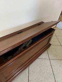 Appendiabiti e cappelliera in legno, per ingresso 130cm + Panca in legno contenitore 138 cm.
