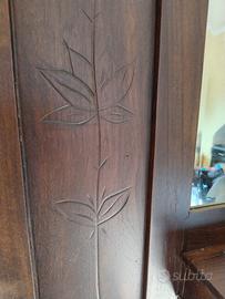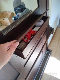 Appendiabiti e portaombrelli in legno stile arte povera con cassetto ed intarsi appendimi in ferro lavorato. Si vende perché in casa non utilizzata