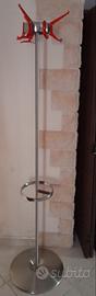 Appendiabiti e portaombrelli marca Kartell modello Hanger. Struttura in acciaio; terminali in policarbonato colore rosso trasparente. Ottime condizioni; integro.