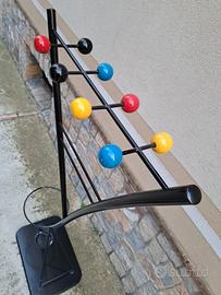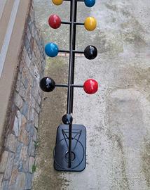 Appendiabiti e portaombrelli anni 70 di manifattura italiana in ferro e con base in legno verniciato in nero con pomelli colorati H 170 L 70 PR 40 in ottime condizioni stile MID CENTURY MODERNO