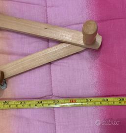 Appendiabiti in legno, estensibile a fisarmonica, dotato di ganci per appenderlo al muro.