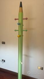 Appendiabiti di legno a forma di matita, pensata per camera di bambini. Altezza all’incirca 170/175 cm inclusa la pedana.