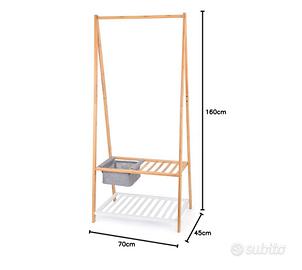 Vendo stender Appendiabiti in Bamboo con ripiani e cestino come da foto. Dimensioni 70x45x160. No trasporto,