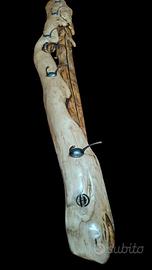 appendiabiti artigianale in legno di castagno, con appendini in ferro, lunghezza 1,60 m.