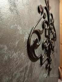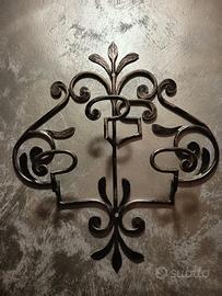 appendiabiti in ferro battuto a muro con tre appendini amovibili.