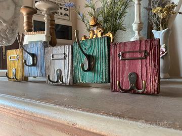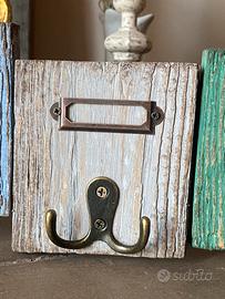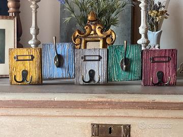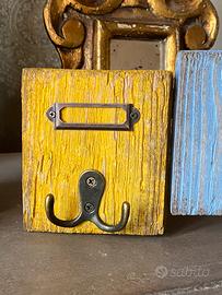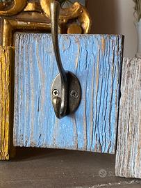 Appendiabiti da parete vintage in legno con 5 ganci e porta etichette. Ogni elemento è dipinto in tonalità pastello (giallo, azzurro, bianco, verde e rosa) con effetto vissuto che dona carattere e unicità. Materiale: legno Finitura: effetto decapato/patinato Dimensioni: lunghezza 49 cm — altezza 13 cm Ganci: 5 appendini in metallo robusto Perfetto per ingresso, camera da letto o casa vacanze. Ideale per appendere borse, sciarpe, chiavi o accessori. Spedisco o ritiro presso Cerreto Guidi
