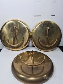 3 attaccapanni in ottone pieno di qualità e firmati , a forma di ancora con relativi supporti per arredo navale