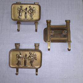 3 appendiabiti in ottone con immagini mitologiche in rilievo. Doppio fissaggio con viti.