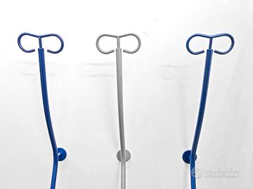 Appendiabiti scultorei "MI SPORGO" della ditta Fly Line , vintage, in metallo laccato alluminio e blu, cm 18x24x164, ottimo stato, visionabili senza impegno. Il prezzo segnato è cad.