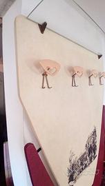 Bellissimo appendiabiti da parete anni 60 in legno rivestito di similpelle mensolina cappelliera in vetro appendini in plastica e ottone.. misura 180x 120 cm