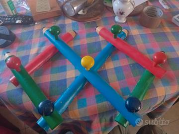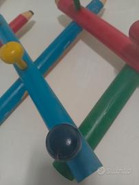 appendiabiti da muro multicolorato in legno, di produzione artigianale.