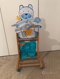 Bellissimo appendiabiti per bambini in legno, con spazio per scarpe, cappelli, guantini e sciarpe pronti per uscire!