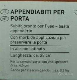 vendo appendiabiti per porta spessore porta 4,5 cm mai usato