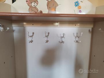 Mobile da ingresso o camera porta abiti e scarpe per bambini piccoli. Grande capienza. Piccola sbeccatura della mensola bassa del legno che non ne pregiudica l'utilizzo.