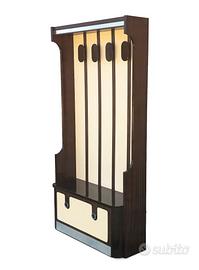 Appendiabiti space Age anni '70 in palissandro e laccato avorio Elegante appendiabiti anni '70 in palissando e laccato color avorio con pomelli cromati Dalle Linee pulite ed essenziali, tipiche del modernariato italiano, elegante nelle finiture cromate si presta per qualsiasi arredo pronto per portare carattere nella propria entrata di casa come anche ufficio. Porta normali segni del tempo che non rovinano l'estetica è funzionalità. Altezza 182 cm. Larghezza 94,5 cm. Profondità 30 cm. Possibile consegna tramite accordo