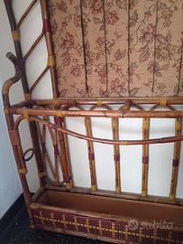 Bellissimo appendiabiti in bambù e rattan con decorazione floreale su stoffa. In ottime condizioni. Altezza 208 cm larghezza 102 cm. Da ritirare in Genova Albaro primo piano
