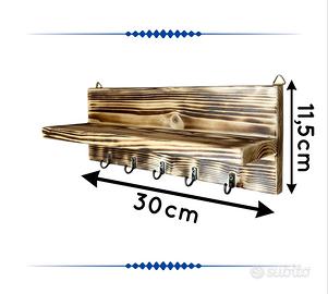 Questo appendichiavi è un pezzo artigianale fatto a mano, pensato per chi ama la qualità, l’autenticità e il fascino del legno lavorato con cura. Perfetto per ingressi, cucine o uffici, combina funzionalità e stile rustico per un’organizzazione pratica ed elegante. Caratteristiche principali: 100% realizzato a mano con legno selezionato e rifinito con attenzione per esaltare le sue venature naturali. Ogni pezzo è unico, frutto di un lavoro artigianale che rende ogni dettaglio speciale. - Mensola integrata con una profondità di 8 cm, ideale per appoggiare portafogli, occhiali, telefono o decorazioni. - Cinque ganci robusti in metallo, perfetti per appendere chiavi, portachiavi, laccetti o altri accessori. - Dimensioni compatte e pratiche: 30 cm di larghezza, 11,5 cm di altezza e 8 cm di profondità, perfette per ottimizzare lo spazio senza rinunciare all’estetica. Ogni mio prodotto è interamente fatto a mano, con passione e attenzione ai dettagli. Se cerchi qualcosa di personalizzato, realizzo anche articoli su ordinazione, creati su misura per soddisfare ogni esigenza. Spedizione rapida e sicura. Per richieste personalizzate, non esitare a contattarmi!