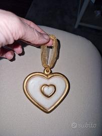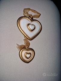 vendo due cuoricini da appendere color oro e panna con immagini di cuoricino interno. Nel grande c'è l'orsetto, nel piccolo l'angioletto. Come nuovi.