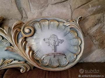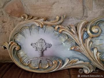 APPENDINO , 50 g Italia. Intaglio alto su legno massello, senza difetti, 2 passanti sul retro. Dimensioni 65x32. Un elemento d'arredo molto suggestivo, con una combinazione di colori tenui ed elementi dorati.