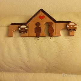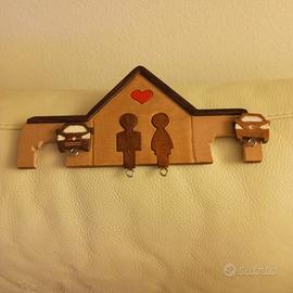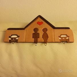 Appendino in legno per chiavi di casa e chiavi auto. Realizzato con traforo, con sagome estraibili, effetto puzzle. Consegna a Chiavari, Lavagna e Sestri Levante. Disponibile anche per spedizionie