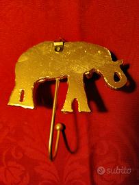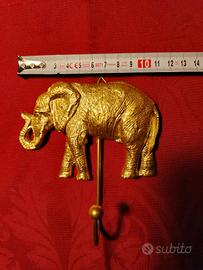Appendino per asciugamani, strofinacci cucina o abiti. In metallo colore oro. A forma di elefante. Larghezza 11 cm. Peso: 110 grammi. Ne ho 4. Il prezzo è per 1.