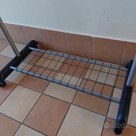 Stender regolabile in altezza e facile da spostare grazie alle ruote. Due ruote si possono bloccare per avere più stabilità e non farlo muovere. Possiede una grata per appoggiare le scarpe o scatole. È molto facile fa montare Acquistabile solo tramite BRT! Per ulteriori foto o informazioni non esitate a contattarmi!