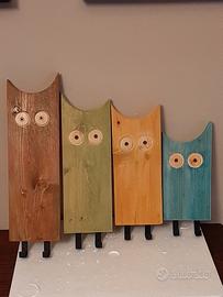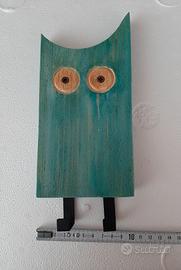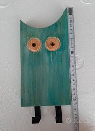 Vendo nuovo Gufetto appenditutto lavorato e dipinto a mano in legno grezzo completo di viti lunghe per fissaggio a muro con tasselli.