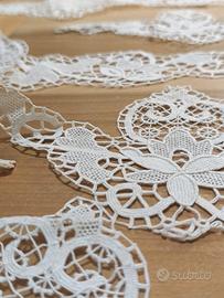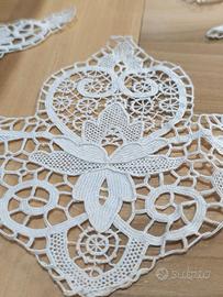 10 splendide applicazioni in pizzo bianco, lavorate interamente a mano con la tecnica del punto ago.