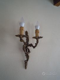 Lampada a muro in ottone, due punti luce, dimensioni cm. 21 x 31, ottimo stato di conservazione.