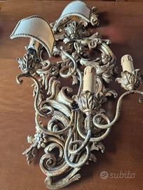 Applique 4 luci in legno intagliato dorato Anni 50