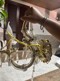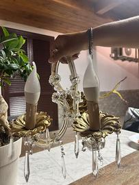 Vendo elegante applique da parete in stile classico, struttura in ottone con bracci in vetro lavorato e pendenti in cristallo. Completa di due portalampada a candela e lampadine decorative. Perfetta per dare un tocco raffinato a salotti, ingressi o camere da letto.