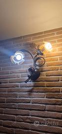 N.2 applique a parete in ferro battuto con rose rosse e foglie oro, con 2 luci cadauna.
